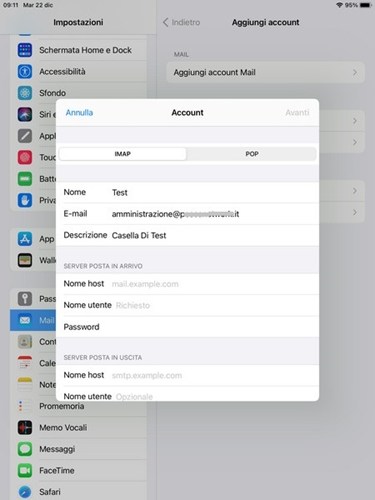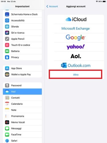 Per configurare il proprio account di posta su un iPad procedere come segue.