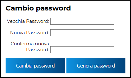 Si aprirà una nuova finestra, da lì si potrà modificare la password cliccando sul pulsante "Cambia Password", inserendone una a propria scelta, rispettando le direttive indicate nella medesima pagina.