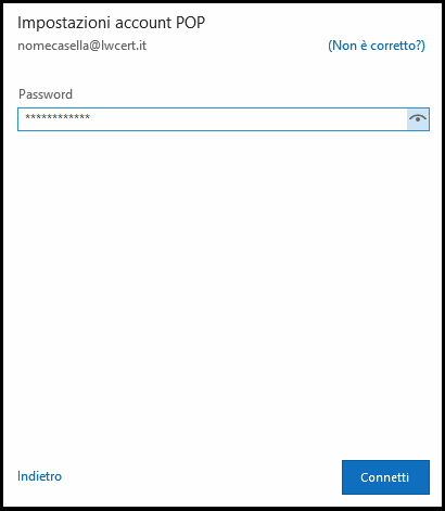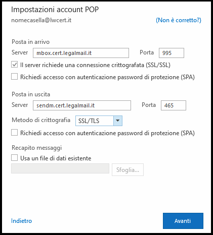 * È possibile configurare la posta in arrivo in modalità POP o IMAP.