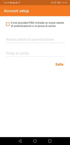 Una volta inseriti toccare il bottone “Create an account” per passare alla schermata successiva, nella quale verrà richiesto di inserire l’indirizzo host del server VoIP: inserire come nome host o provider il seguente link: voip.lwlink.it e toccare su “Avanti”.