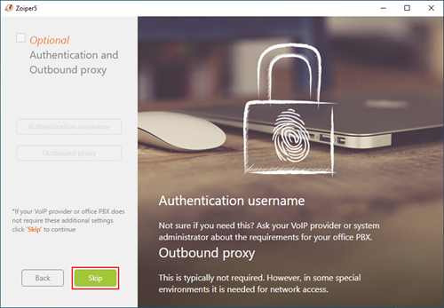 Procedere quindi cliccando sul bottone con dicitura “Skip” per arrivare alla schermata successiva che controllerà l’esito dei dati inseriti precedentemente. Una volta terminato il controllo dei parametri il risultato sarà come nell’immagine sottostante, con la dicitura “SIP TCP” di colore verde. Cliccare sul bottone con dicitura “Next” per chiudere la configurazione di Zoiper ed iniziare ad usarlo.