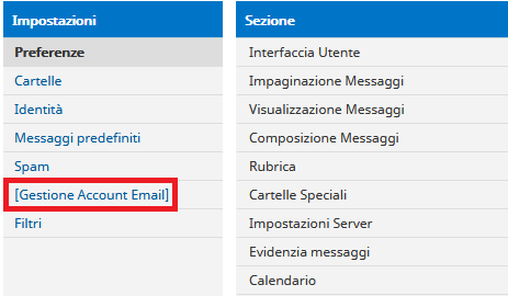 È possibile configurare il filtro antispam anche accedendo al menu "[Gestione Account Email]".