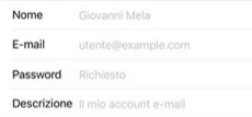 Ora bisogna inserire i parametri per il corretto funzionamento dell’account: nella riga Nome digitare il nome così come si desidera che appaia ai destinatari, nella riga E-mail inserire l’indirizzo di posta elettronica per esteso, nella riga sottostante Password va inserita la password comunicata all’atto della creazione della casella mail, infine nell’ultima riga Descrizione (che è comunque facoltativa) va digitato un nome che identifichi facilmente l’account all’interno dell’Ipad.