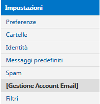 IMPORTANTE: la password fornita è provvisoria, pertanto prima della configurazione dell’account è necessario collegarsi alla web mail (https://webmail.lakeweb.it, utilizzando come nome utente l’indirizzo mail completo e la password temporanea: una volta loggati, accedere al menu Impostazioni in alto a destra e scegliere la voce Gestione Account Email dalla colonna a sinistra).