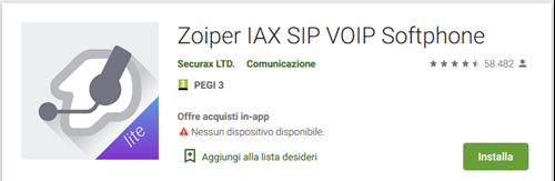 Per prima cosa occorre scaricare l'App Zoiper dal Play Store di Google, disponibile a questo link.
