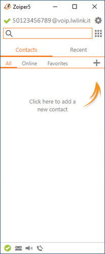 La schermata qui sotto visualizza il software Zoiper pronto per essere utilizzato e nella parte superiore la spunta di colore verde notifica l’avvenuta registrazione sul server VoIP configurato in precedenza.