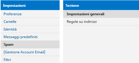 Successivamente cliccare sulla voce "Spam" - "Impostazioni generali".