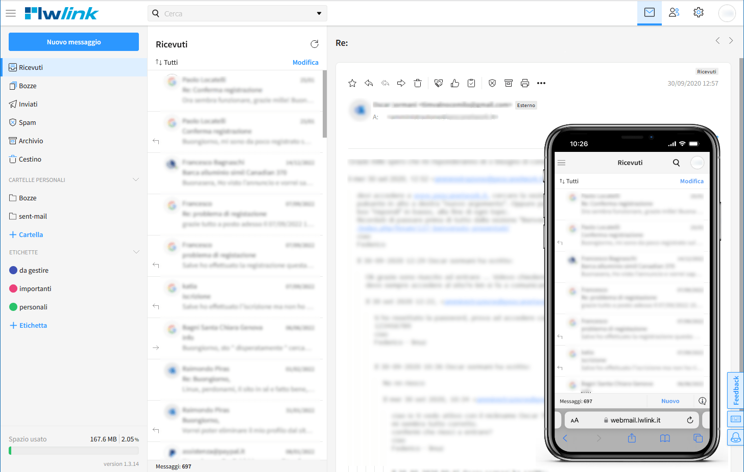 Il servizio di Email Business lwlink include il backup automatico delle mail, con la possibilità di consultare e all'occorrenza recuperare in autonomia i messaggi di posta elettronica, ad esempio in caso di cancellazione accidentale.